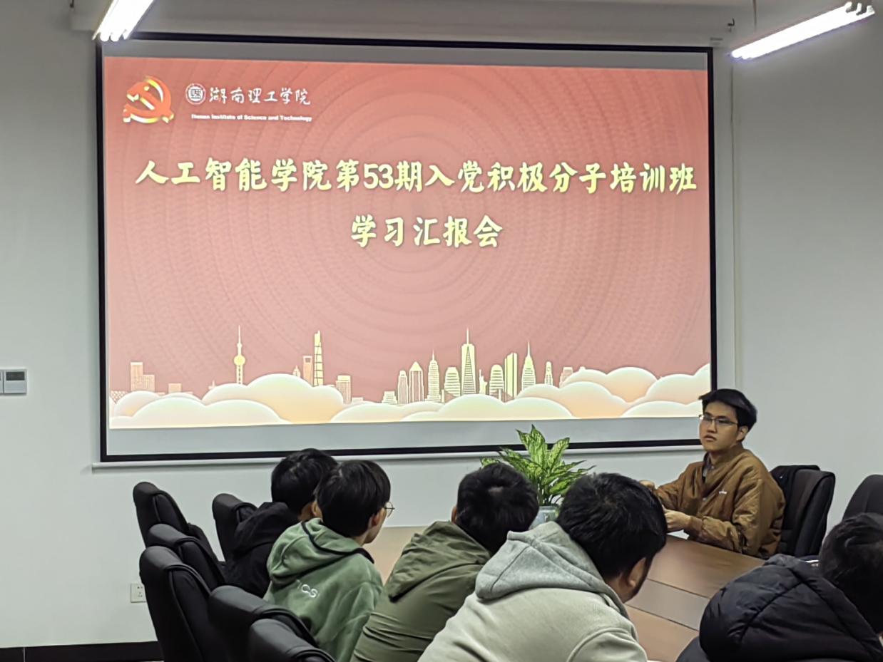 11月20日晚7时,人工智能学院于17505B会议室开展第53期入党积极分子培训学习汇报会。会议由学院院团学学生会组织部部长唐展鹏...
