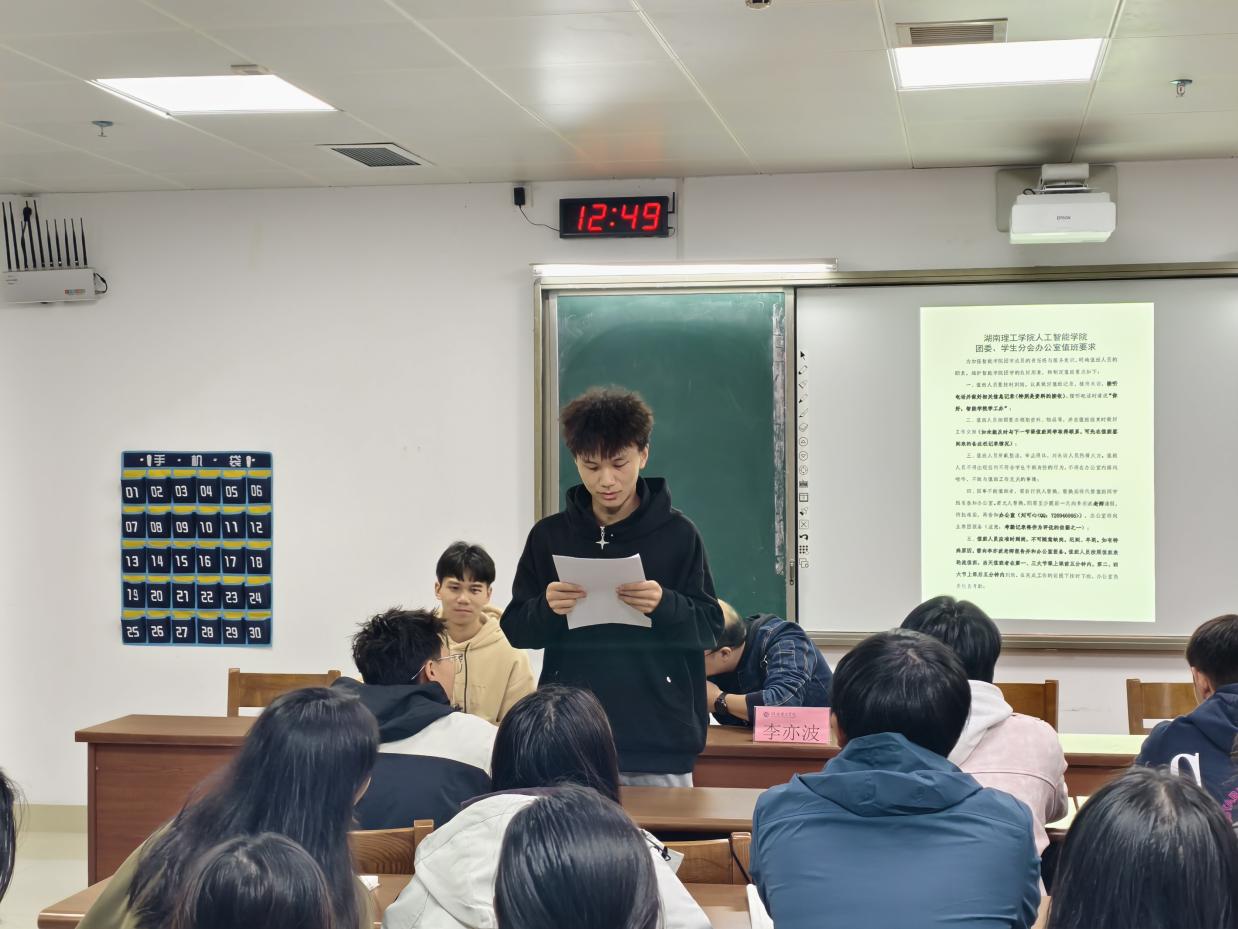 在交流指导环节,贺波彬书记结合过往模范案例,对团学成员提出具体要求。他强调,全体成员要以优秀模范为榜样,提升思想觉悟;要平衡团学工作与日常学习的关系,明确个人发展目标,在实践中提升综合素质,发挥好模范带头作用;要求大家端正态度,严谨务实,注重团队协作,高效完成各项任务。同时,他要求大家保持严谨务实的工作态度,加强团队协作,高效落实各项任务,并鼓励成员能珍惜平台机会,在工作中收获成长与友谊,共同推动人工智能学院团学工作再上新台阶。