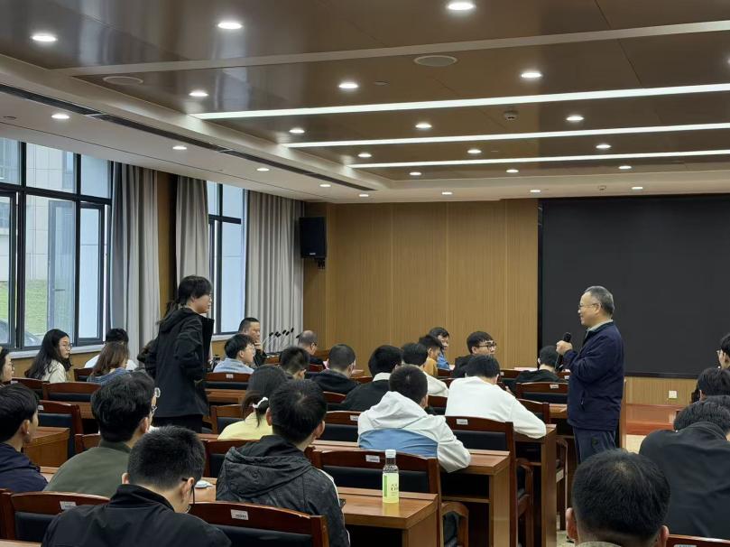 在互动环节,学生们就选题策略、企业命题的技术实现路径等问题踊跃提问。“同一项目选题是否能同时参加两个同一时间段的不同赛事?”“有关电池材料方向能否参加研电赛?”黎教授逐一耐心解答,现场气氛热烈。参会同学表示,通过交流对竞赛内涵和备赛方向有了更清晰的规划。