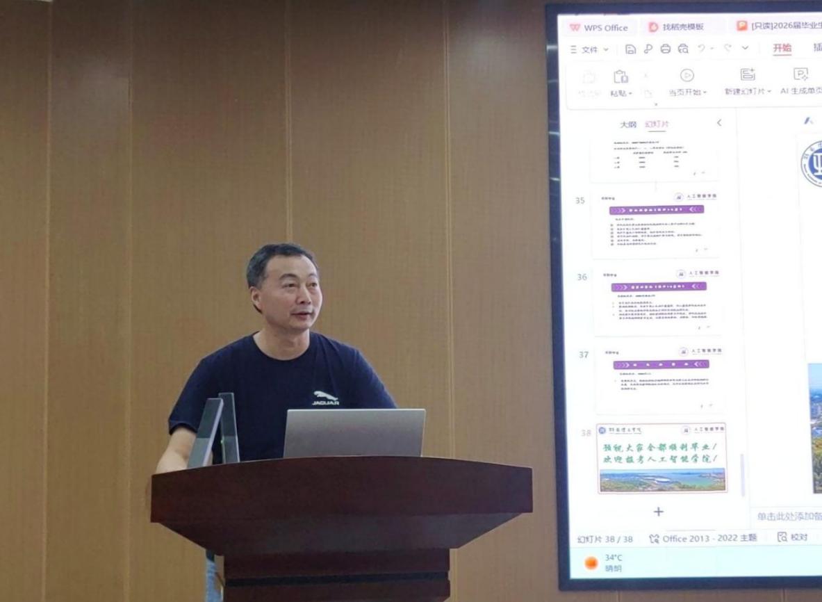 9月16日晚上19:00,人工智能学院于17118召开2022届毕业生年级大会,学院党委书记贺波彬、学院院长吴健辉、副院长周峰及辅导员陈婷、刘照馨出席会议。会议由辅导员陈婷主持,全体2022届学生参加。