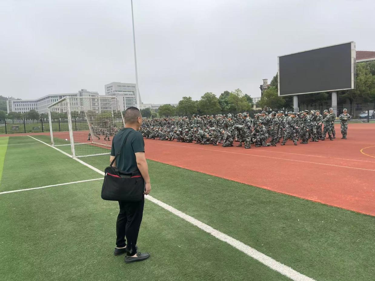 当日上午,荣军老师和鲁睿其老师专程前往军训场地看望学生。老师们穿梭在训练队伍中,仔细查看同学们的训练状态,关切询问大家的身体状况与适应情况,并为学子们加油鼓劲。