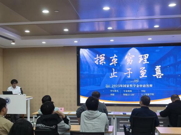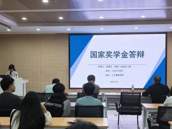 为展现学院优秀学子风采,体现评奖评优过程的公平公正公开,9月21日晚,人工智能学院在17104会议室举行国家奖学金申请答辩。人工智能学院党委书记贺波彬、副院长周峰、教授委员会成员刘靖以及教学委员会成员刘翔、何伟担任答辩评审。