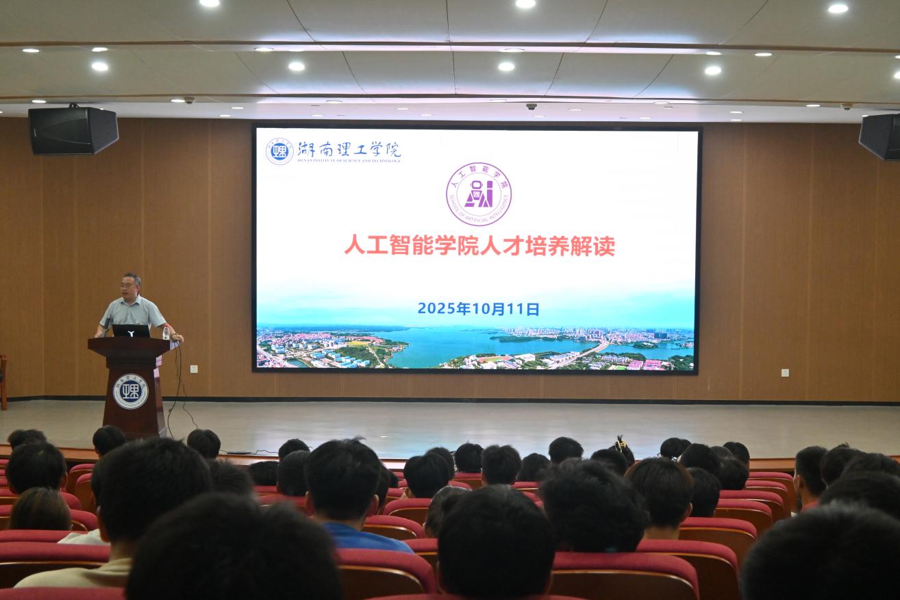 10月11日19:00,人工智能学院于17118会议室举行入学教育“院长第一课”,讲座由人工智能学院院长吴健辉主讲,新生辅导员余滔主持,2025级全体新生到会。