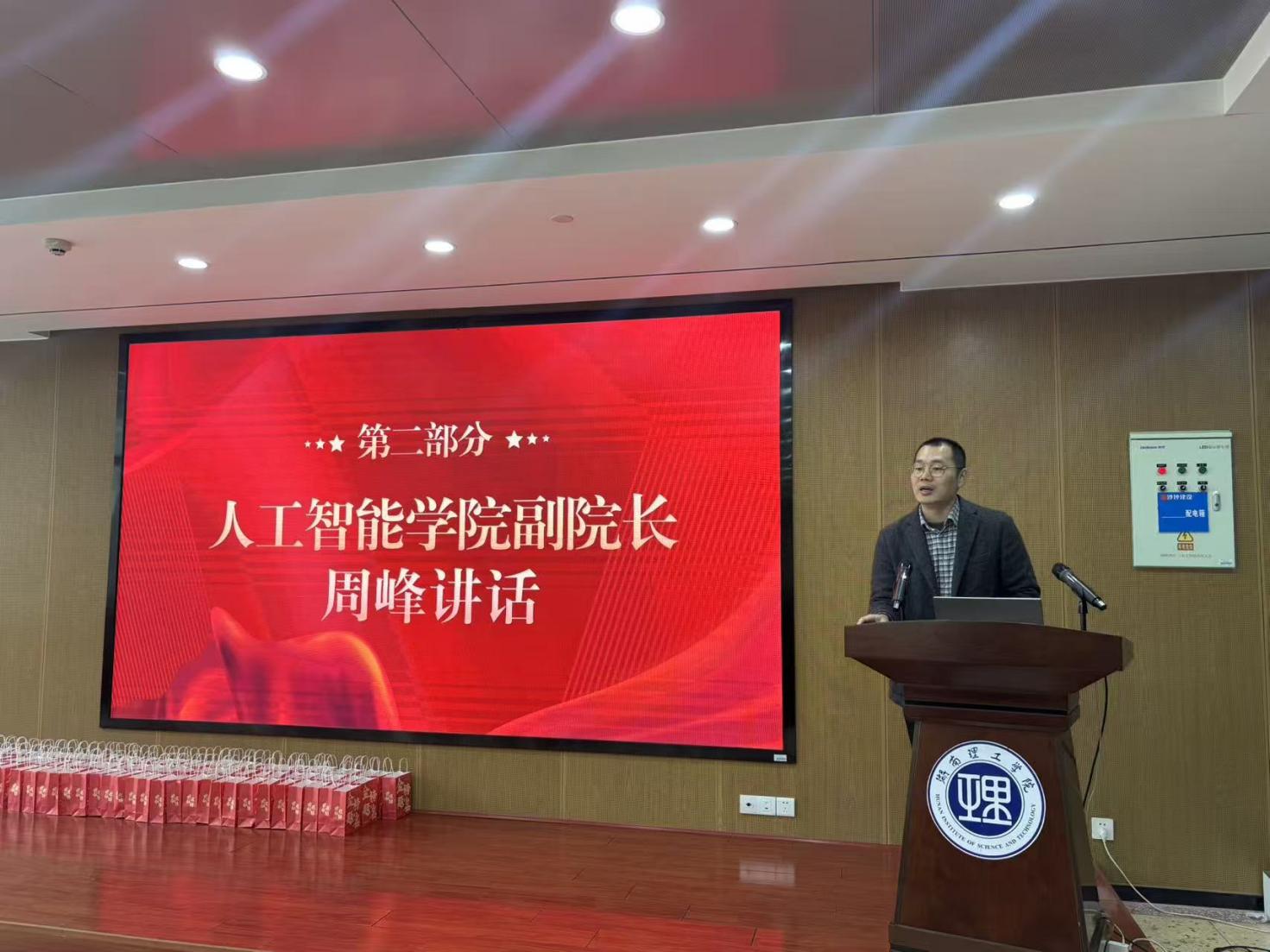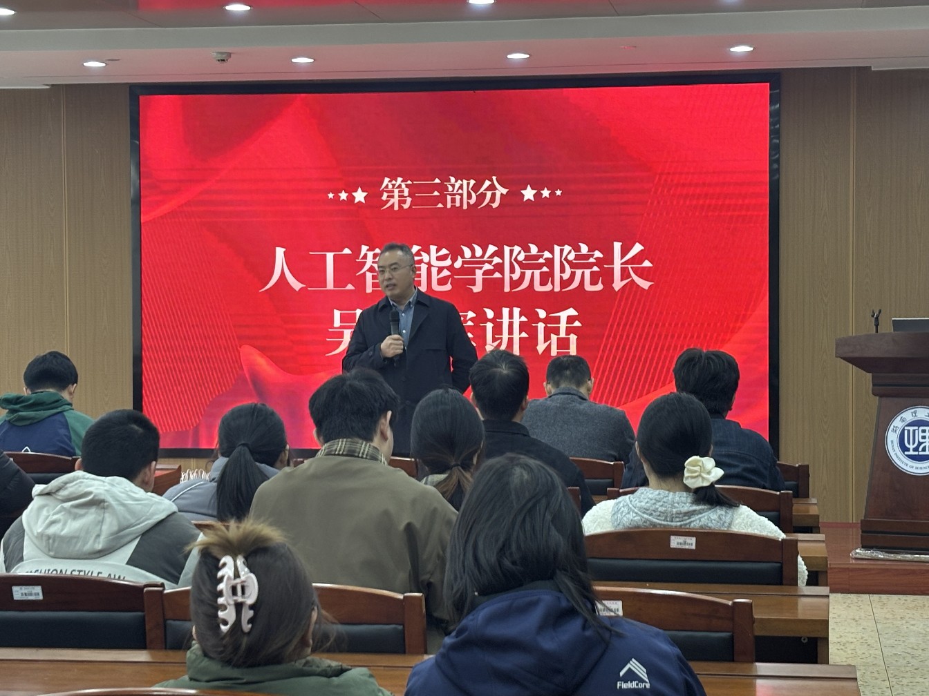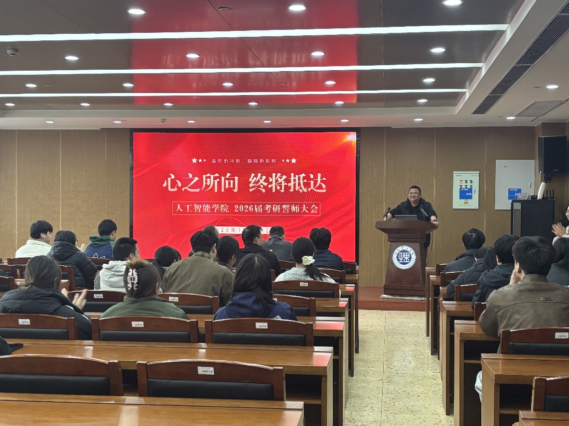 为凝聚冲刺力量、明确最后阶段备考方向、传授应考关键技巧,12月11日上午11时,人工智能学院在17118会议室举行2026届考研誓师大会。人工智能学院院长吴建辉、副院长周峰、2026届辅导员陈婷及班主任代表徐壮出席会议,会议由学院党委副书记付亚子主持,全体2026届考研学子参会。